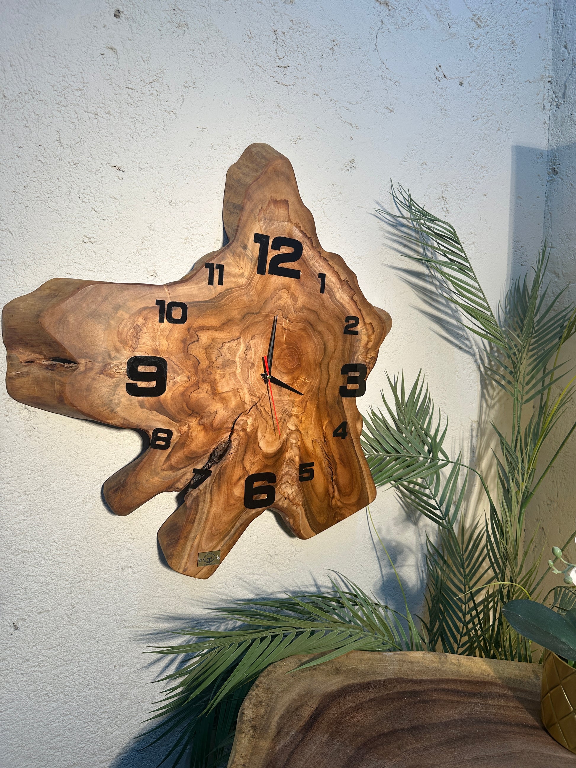 ساعة من خشب التيك المستورد يمكنك تصميمها على اختيارك