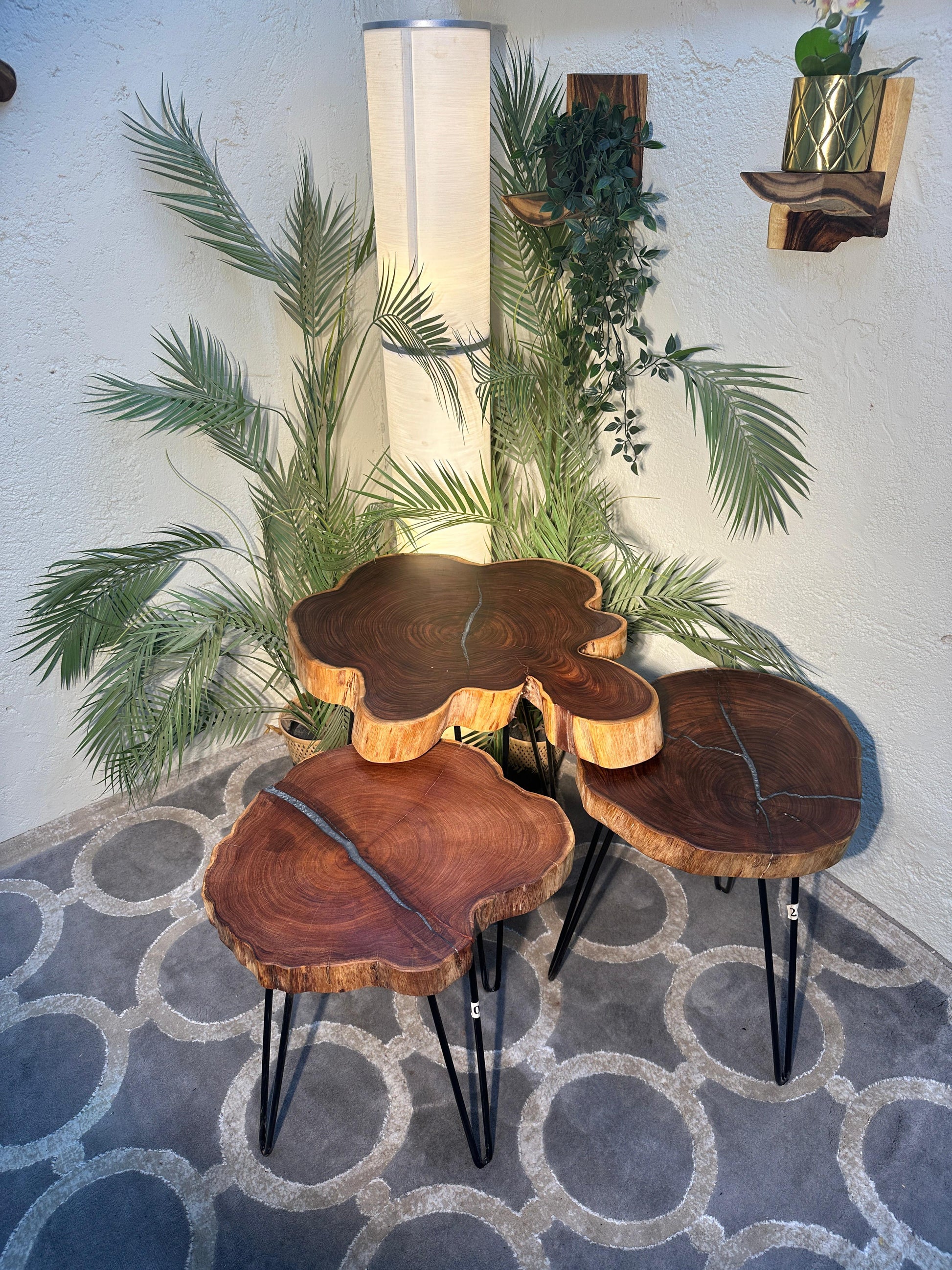 طقم من طاولات تقديم من افضل أنواع الخشب والرزن مع استخدام افضل المواد الفنش الآمنة