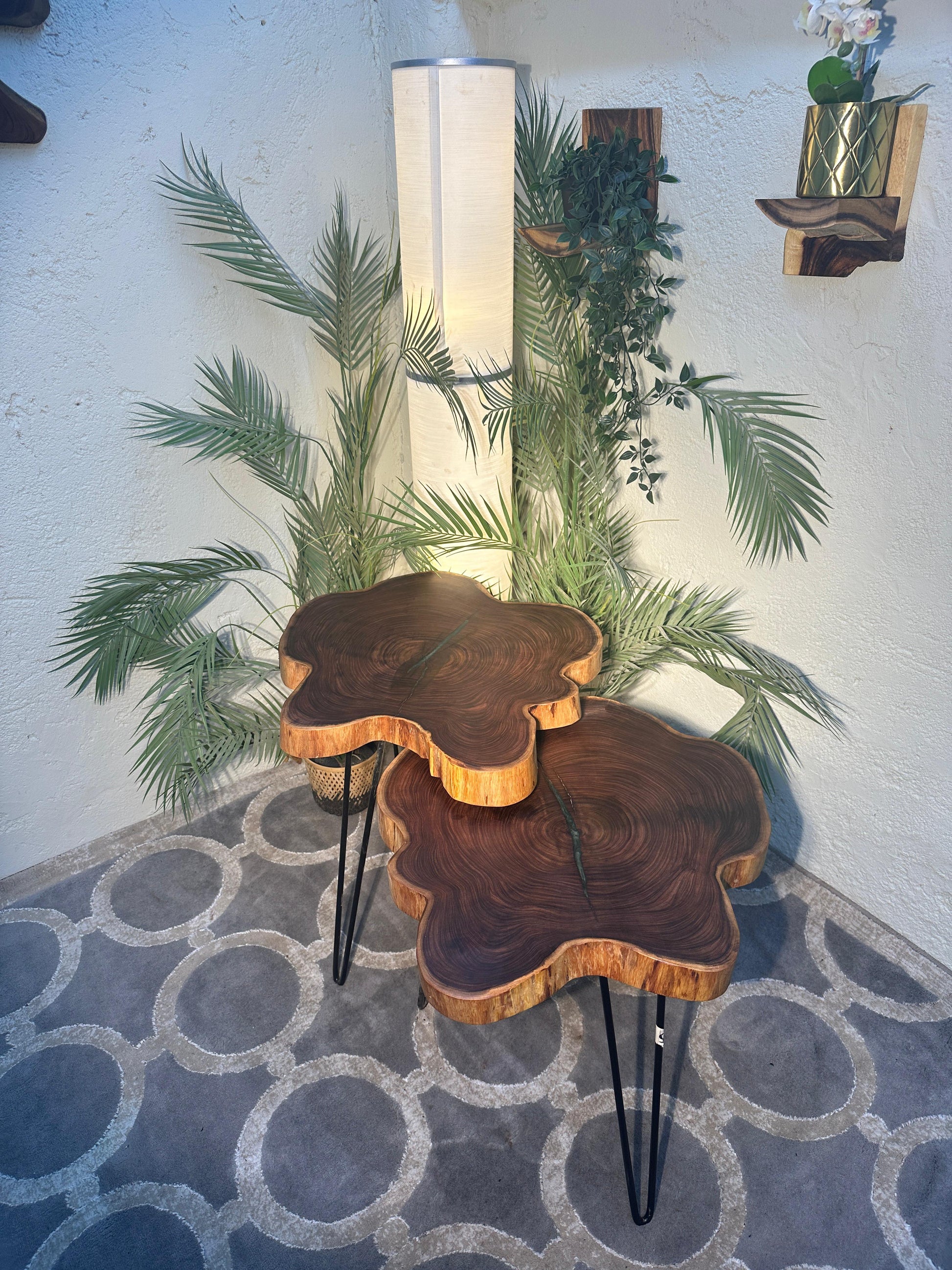 طقم من طاولات تقديم من افضل أنواع الخشب والرزن مع استخدام افضل المواد الفنش الآمنة