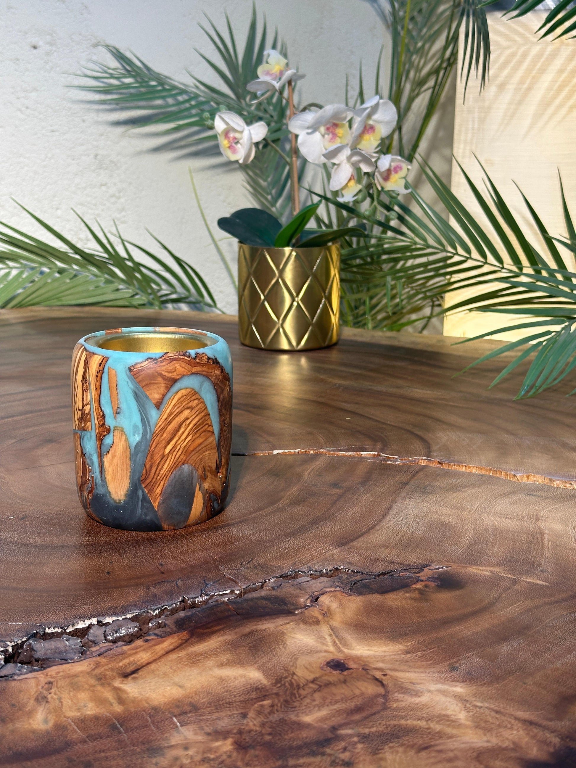 مبخر من خشب الزيتون ومادة الرزن صنعت عن طريق الخراطة وكل قطعة تكون مميزه ومختلفة ولاتتكرر